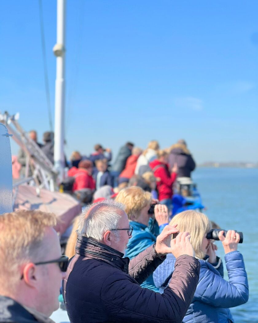 Ook groepen zijn van harte welkom aan boord van De Festijn! Groepsboekingen kunnen plaats vinden op dinsdagen & donderdagen in het laagseizoen. Dankzij onze vaarroute tussen de zandbanken en de wal hebben we zelden last van grote golven, waardoor de tocht ook prettig is voor ouderen, kinderen en mensen met een beperking. Aan boord is ruimte voor rolstoelen en rollators (m.u.v. elektrische rolstoelen).